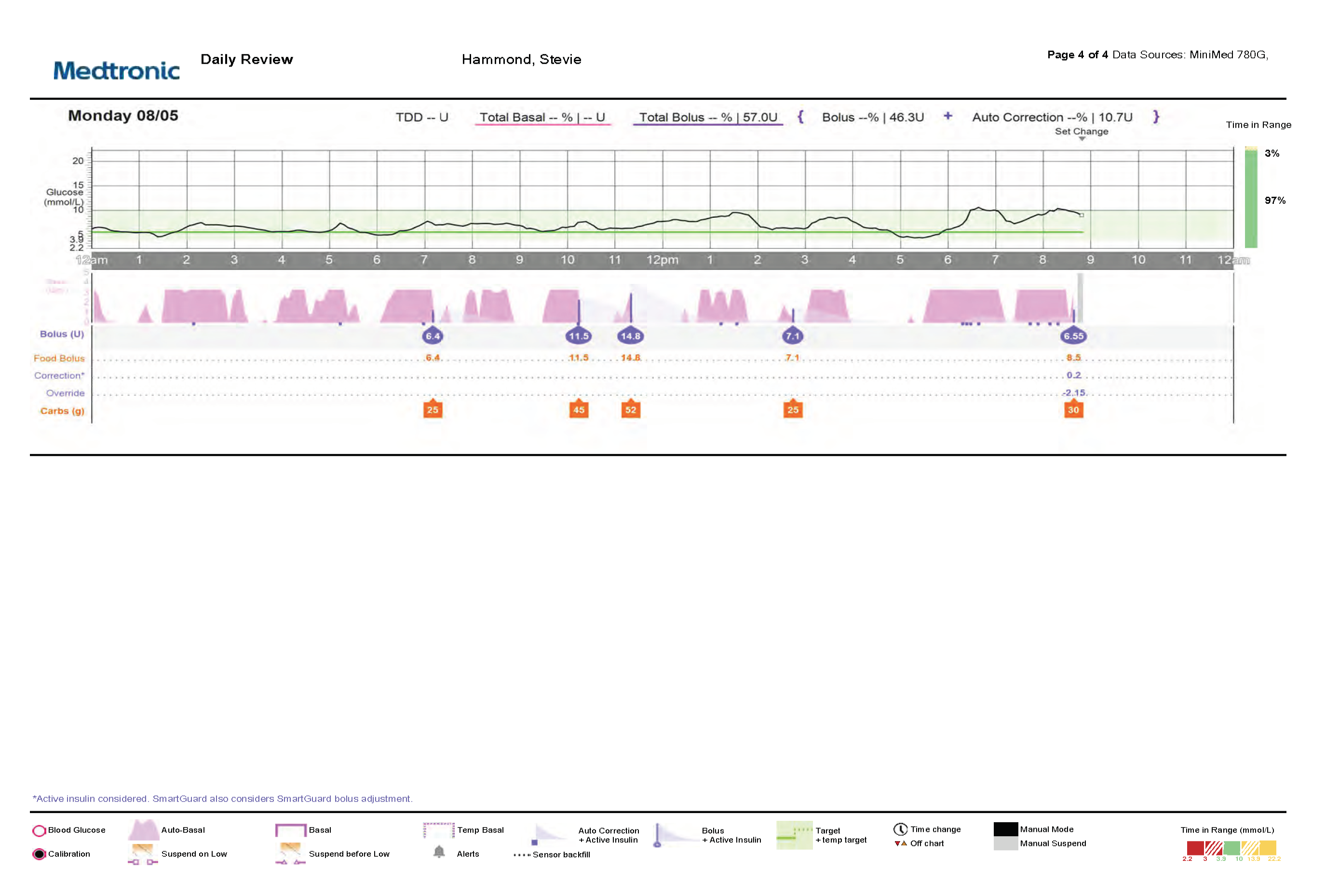 The CareLinkTM software is intended for use as a tool to help manage diabetes. The purpose of the software is to take information transmitted from insulin pumps, glucose meters and continuous glucose monitoring systems, and turn it into CareLinkTM reports. The reports provide information that can be used to identify trends and track daily activities—such as carbohydrates consumed, mealtimes, insulin delivery, and glucose readings. NOTE: CareLinkTM report data is intended for use as an adjunct in the management of diabetes only and NOT intended to be relied upon by itself. Patients should consult their healthcare providers familiar with the management of diabetes prior to making changes in treatment. For additional safety information and user guides, see https://bit.ly/MiniMedRisks..