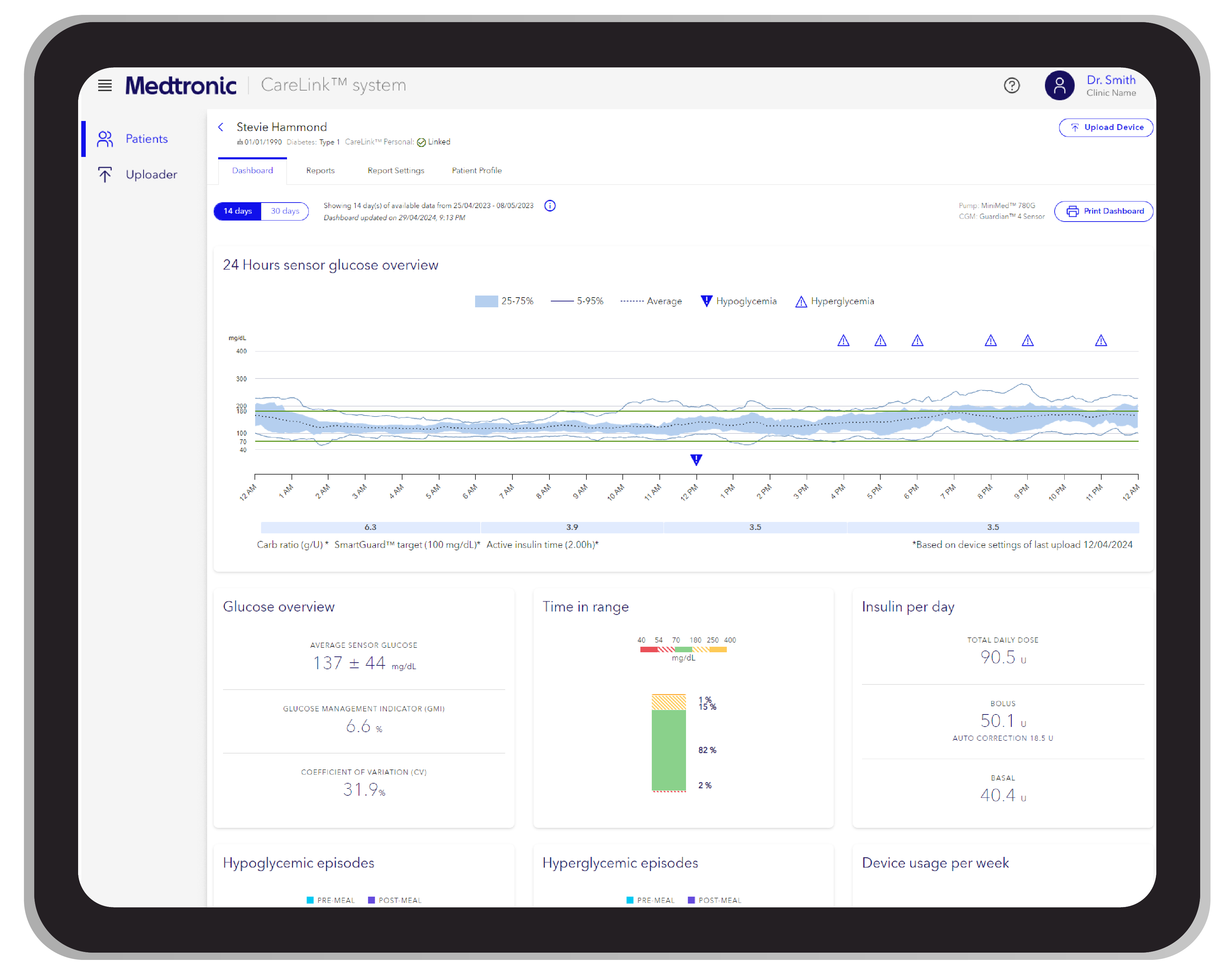 CareLink™ Clinic transforms data from patients’ devices into insights about their diabetes therapy. It provides the data you need, at the level of detail that is right for you — easing data overload and improving clinic efficiency. With CareLink™ Clinic, you can spend less time gathering and analyzing data and more time optimizing patient outcomes.