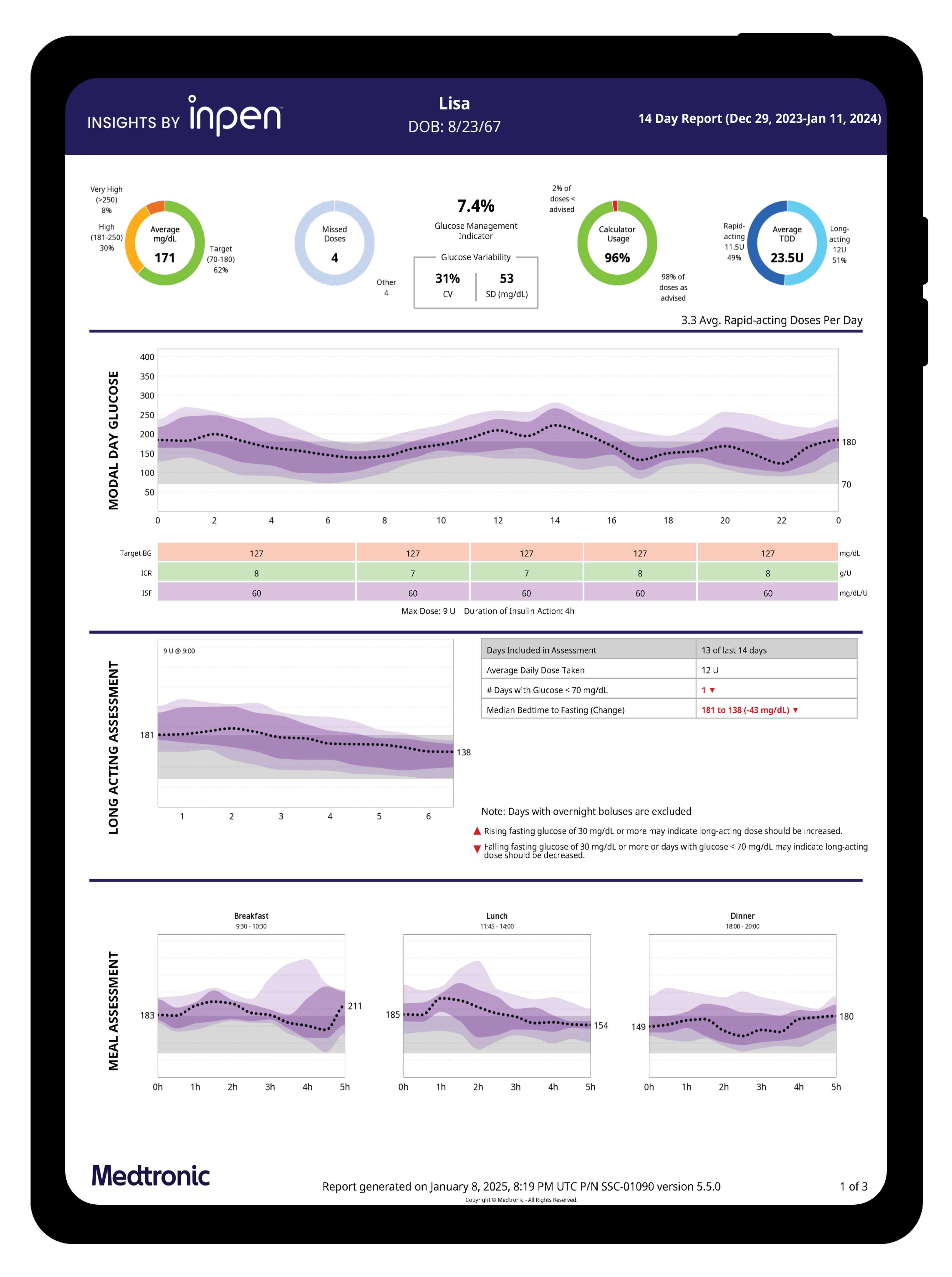 InPen™ Insights Reports help providers assess a patient’s insulin doses and glycemic levels, regardless of which multiple daily injection regimen the patient is following.